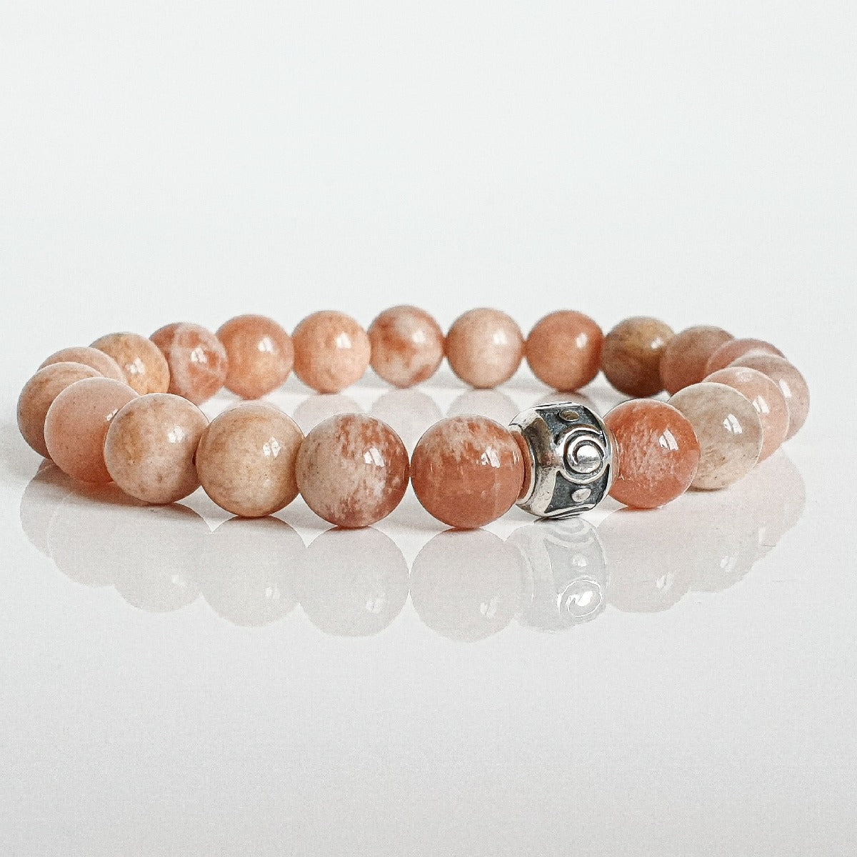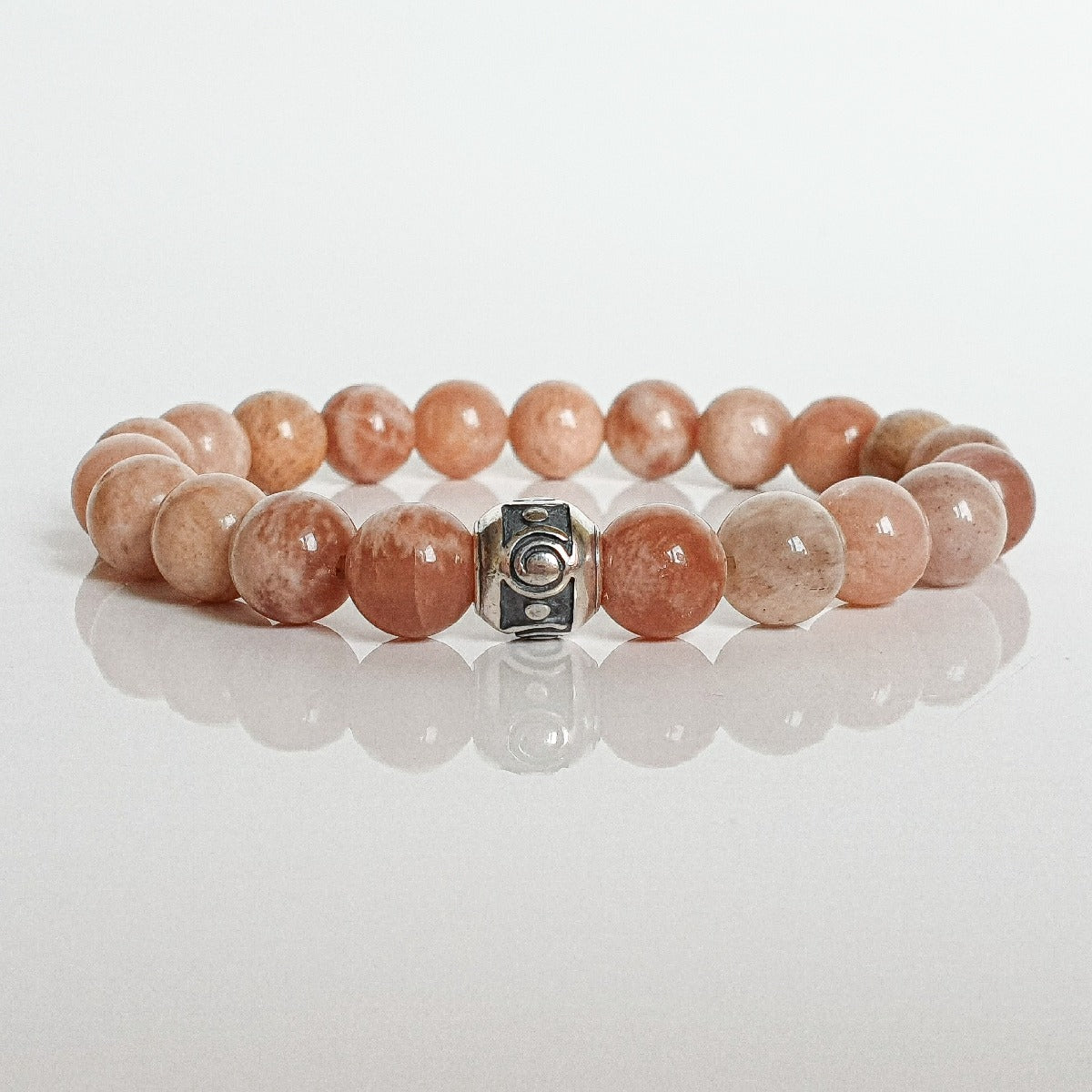 Bracelet for women with 8 mm natural Sunstone represents joy and self-realization. The importance of this mineral is closely linked to luck as well as to happiness and abundance. Sunstone promotes positive energy, determination and will. It is believed that this beautiful stone dispels fear and inspires vitality and optimism.