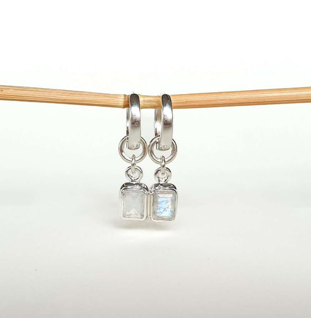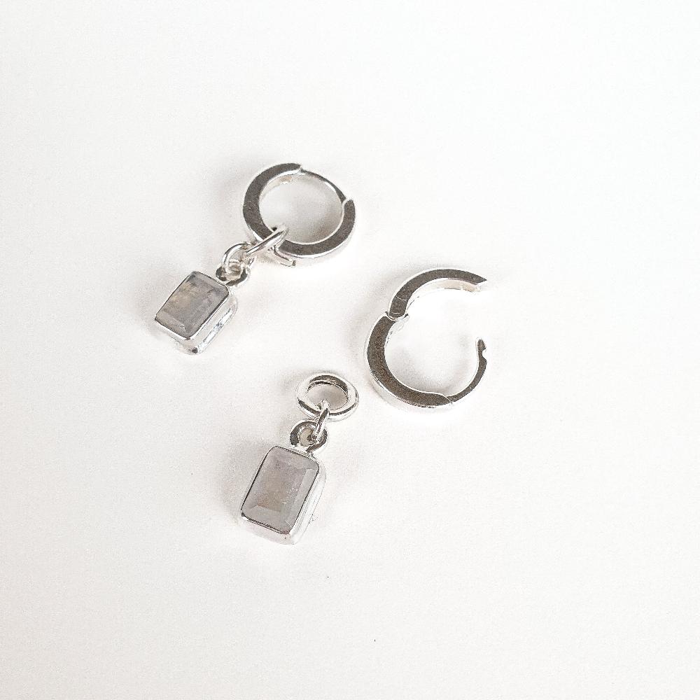 Mėnulio akmens dydis ~9 mm x ~6 mm, šią auskarų dalį galite nešioti atskirai kaip pakabuką.